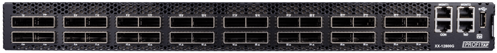 XX-12800G is a high-density Network Packet Broker, offering you the power and flexibility of network traffic management with a total throughput of 12.8 Tbps in a single 19” RU. It features 32 x QSFP-DD ports (40/100/400 Gbps).